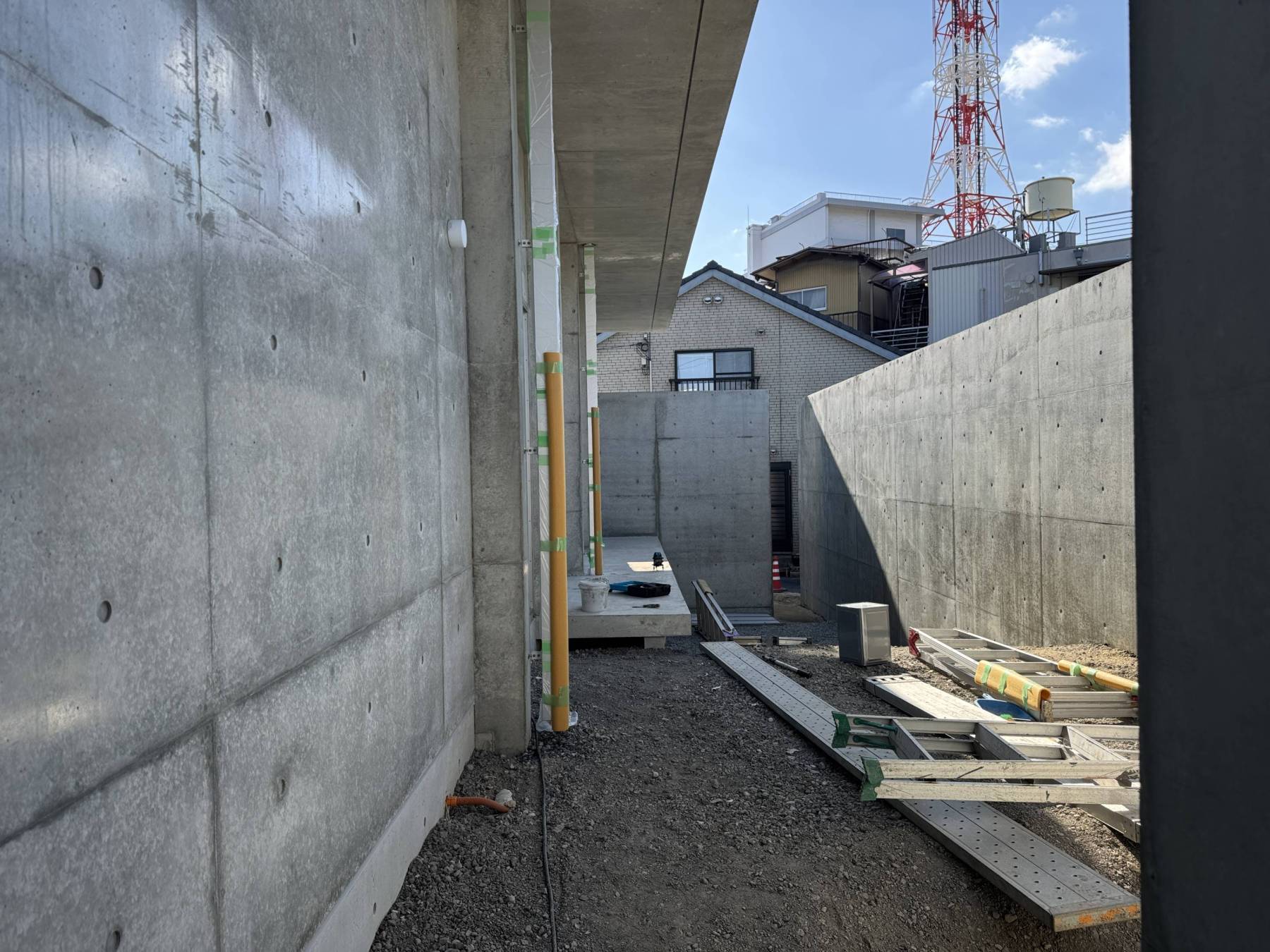 今回かなりの狭小地ということもあり3回に分けてのコンクリート工事。弊社のもっとも得意とする打ちっぱなしの住宅が少しづつ形になっていく過程をお楽しみ下さい。
