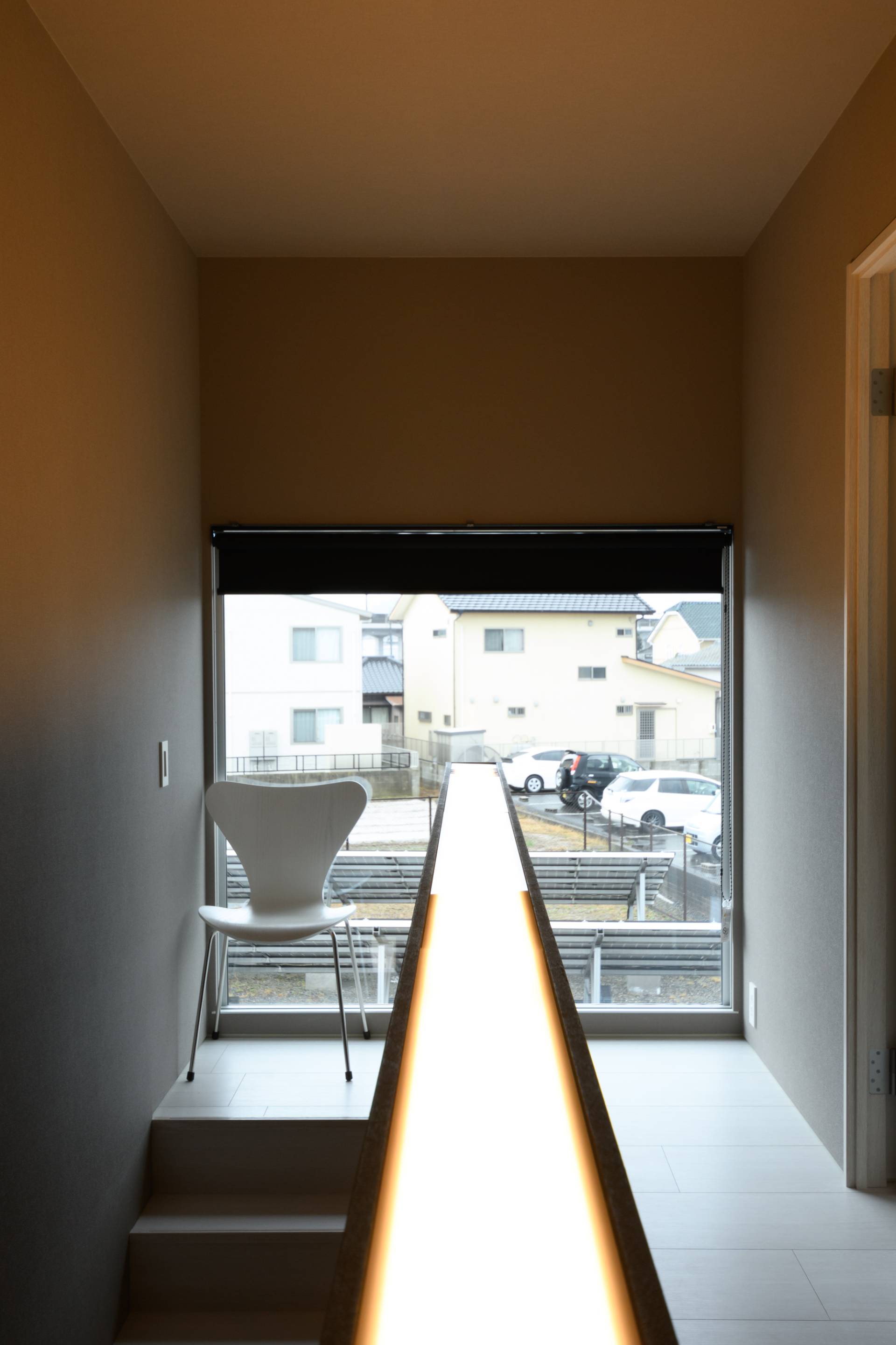 3つ目は広がり感を出すためです。これにはもう一つ仕掛けがあって、2階廊下の手すりに間接照明が施されます。